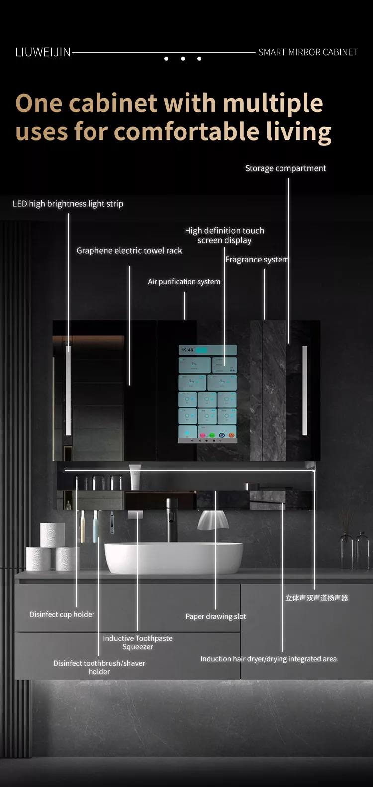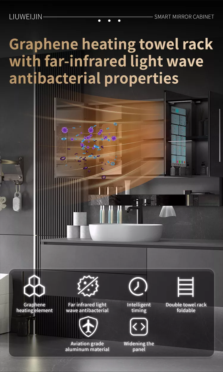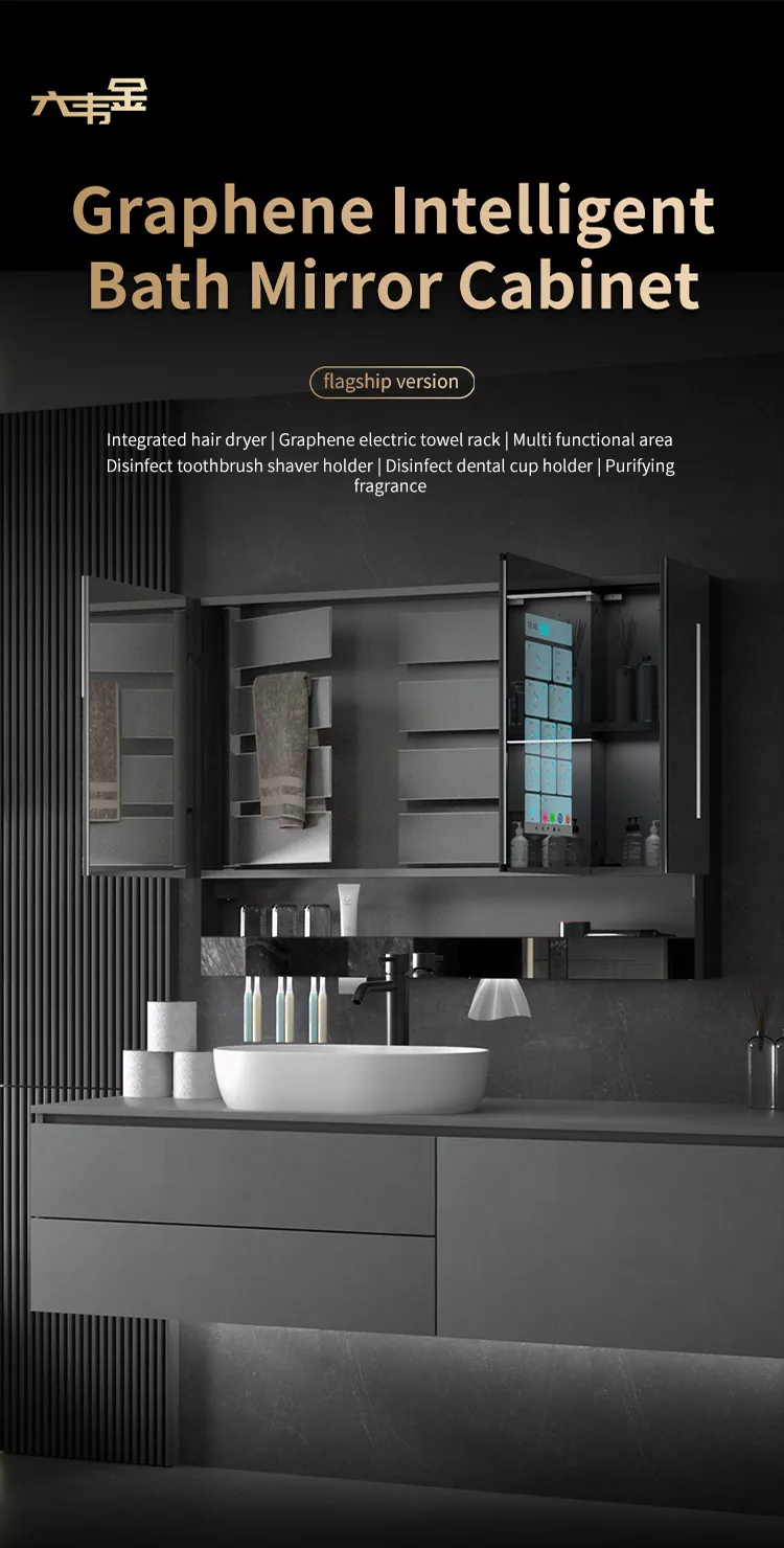 El gabinete de espejo de baño inteligente Liuwei Jinshi Graphene hace que su forma de lavar más simple, el limpiador de baño y más fresco, y la vida sea más conveniente.