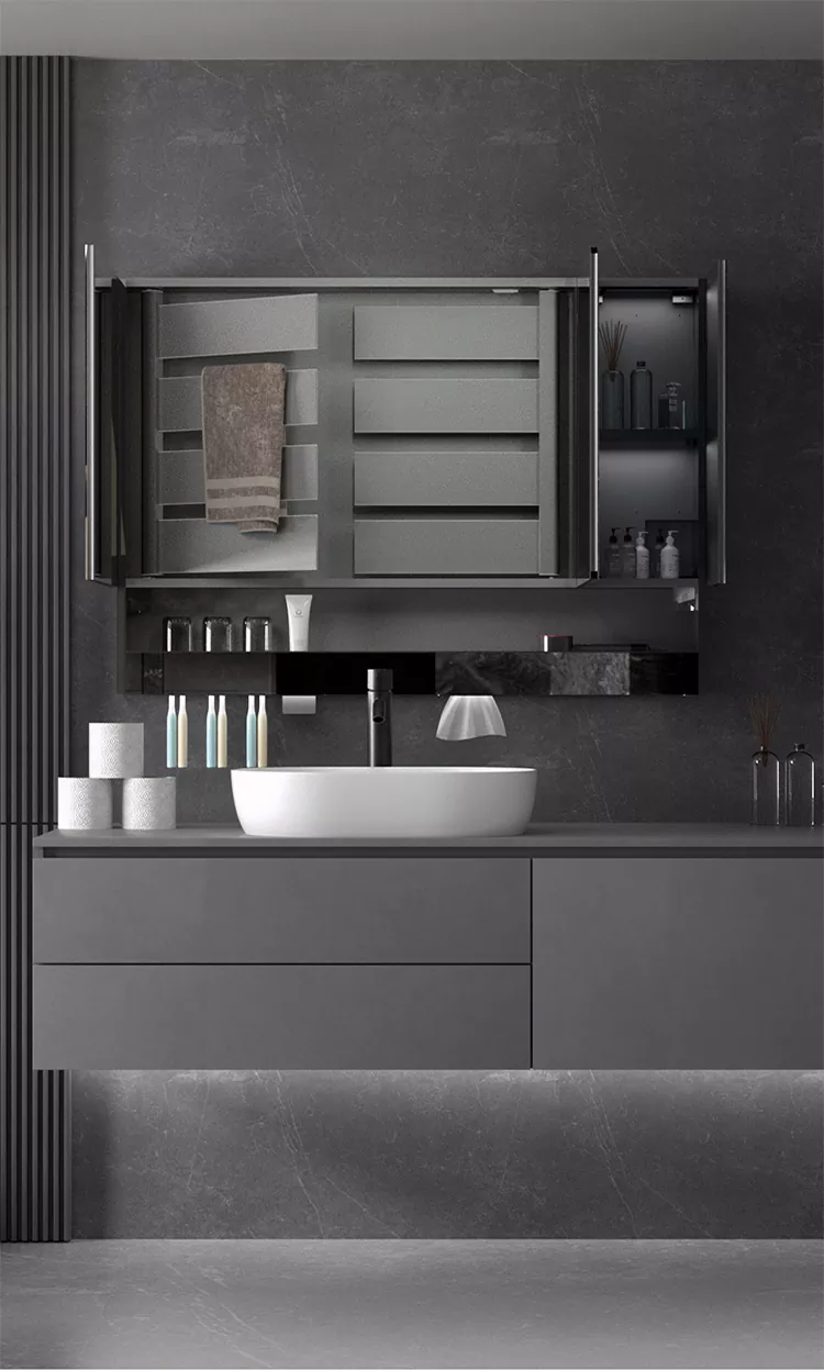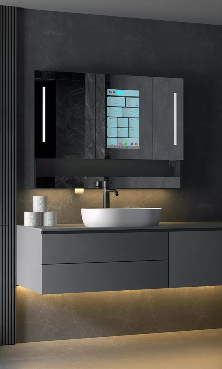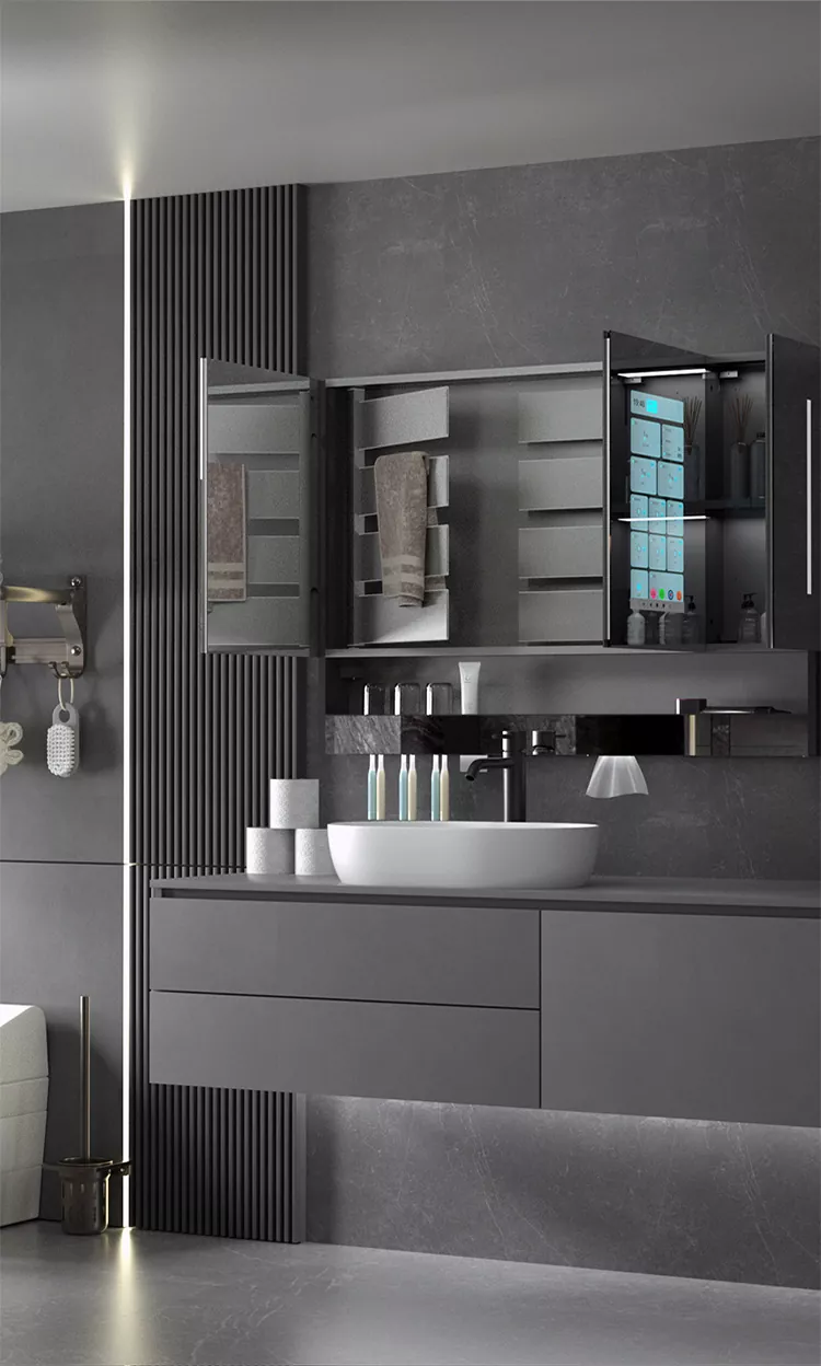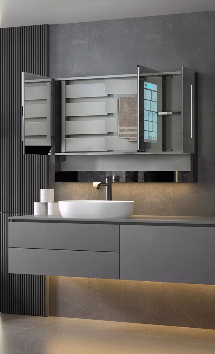 • Gabinete de espejo de baño inteligente de grafenoGabinete de espejo de baño inteligente de grafeno